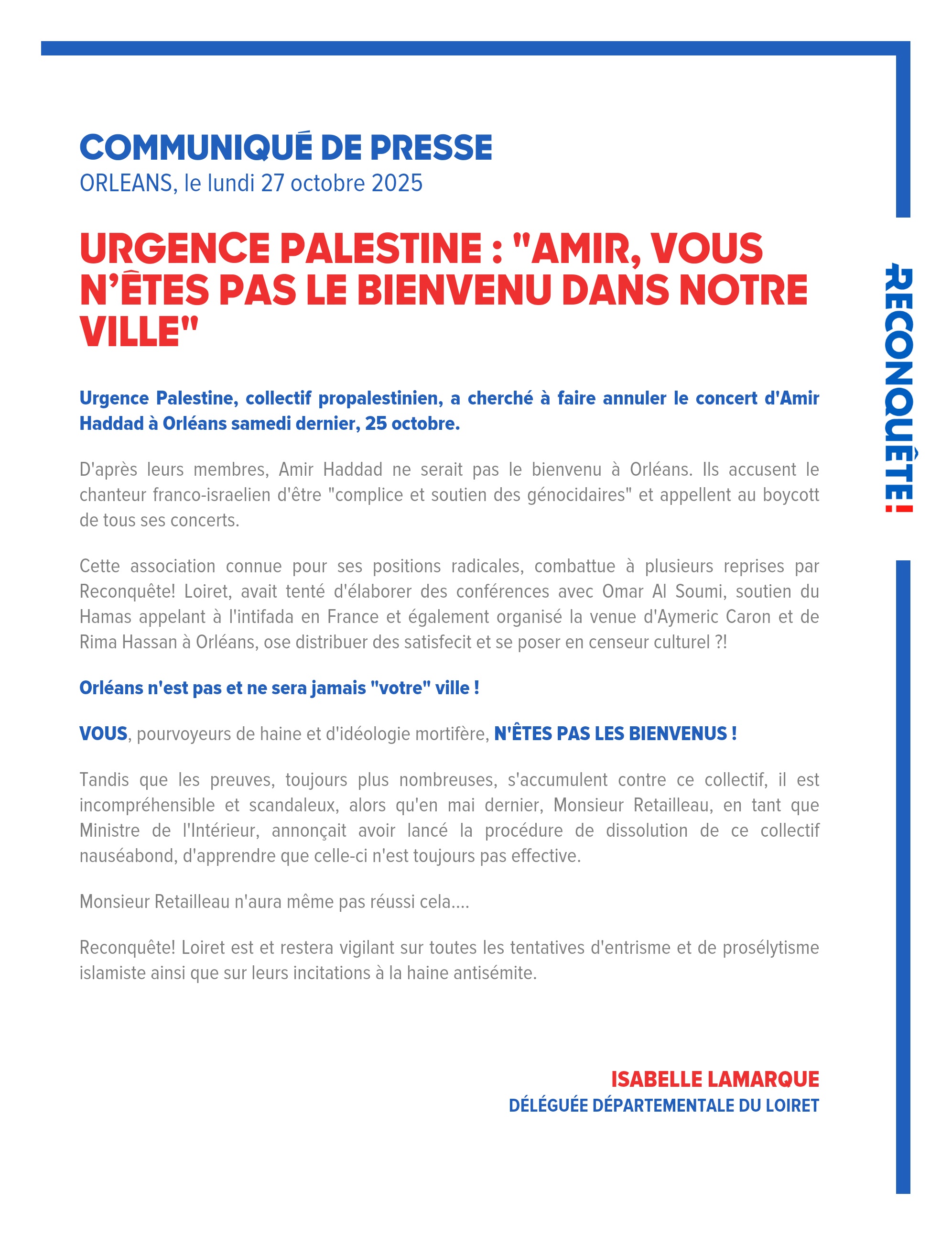Reconquête! Loiret est et restera vigilant sur toutes les tentatives d'entrisme et de prosélytisme islamiste ainsi que sur leurs incitations à la haine antisémite.